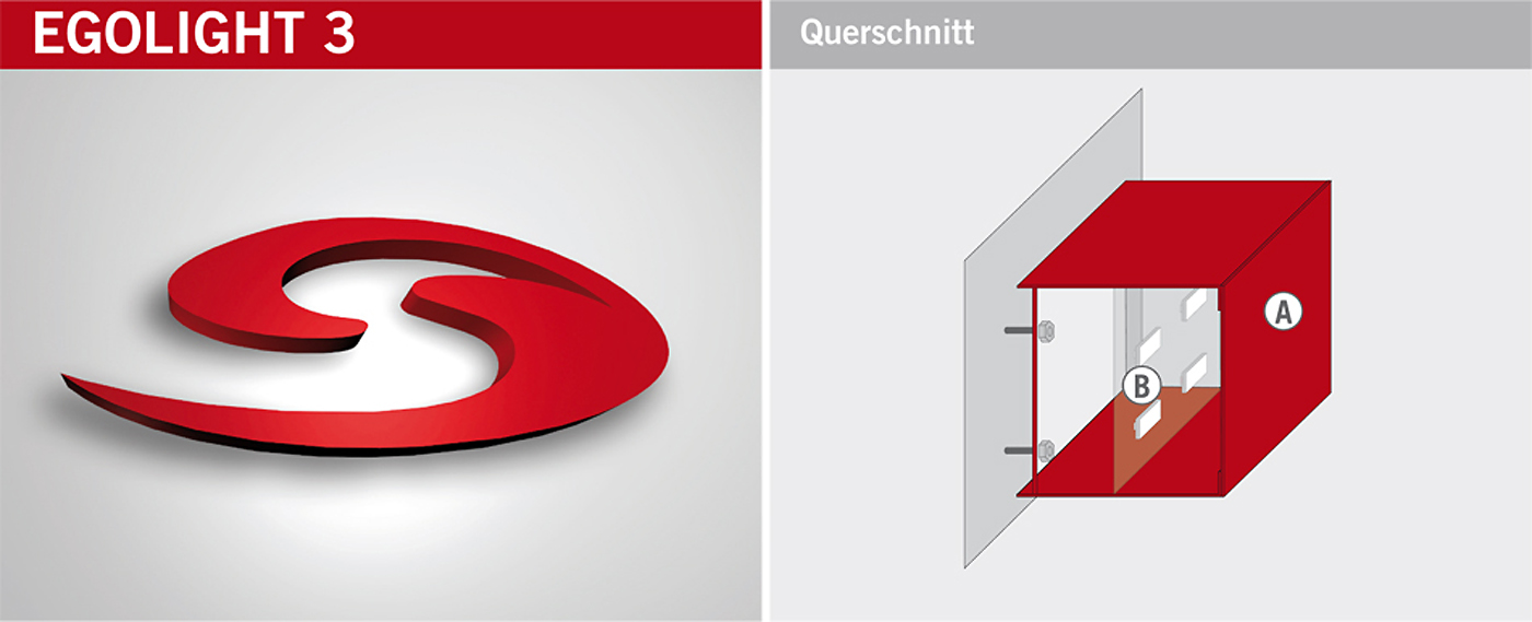 Vollrelief-Buchstabe, nach hinten strahlend
