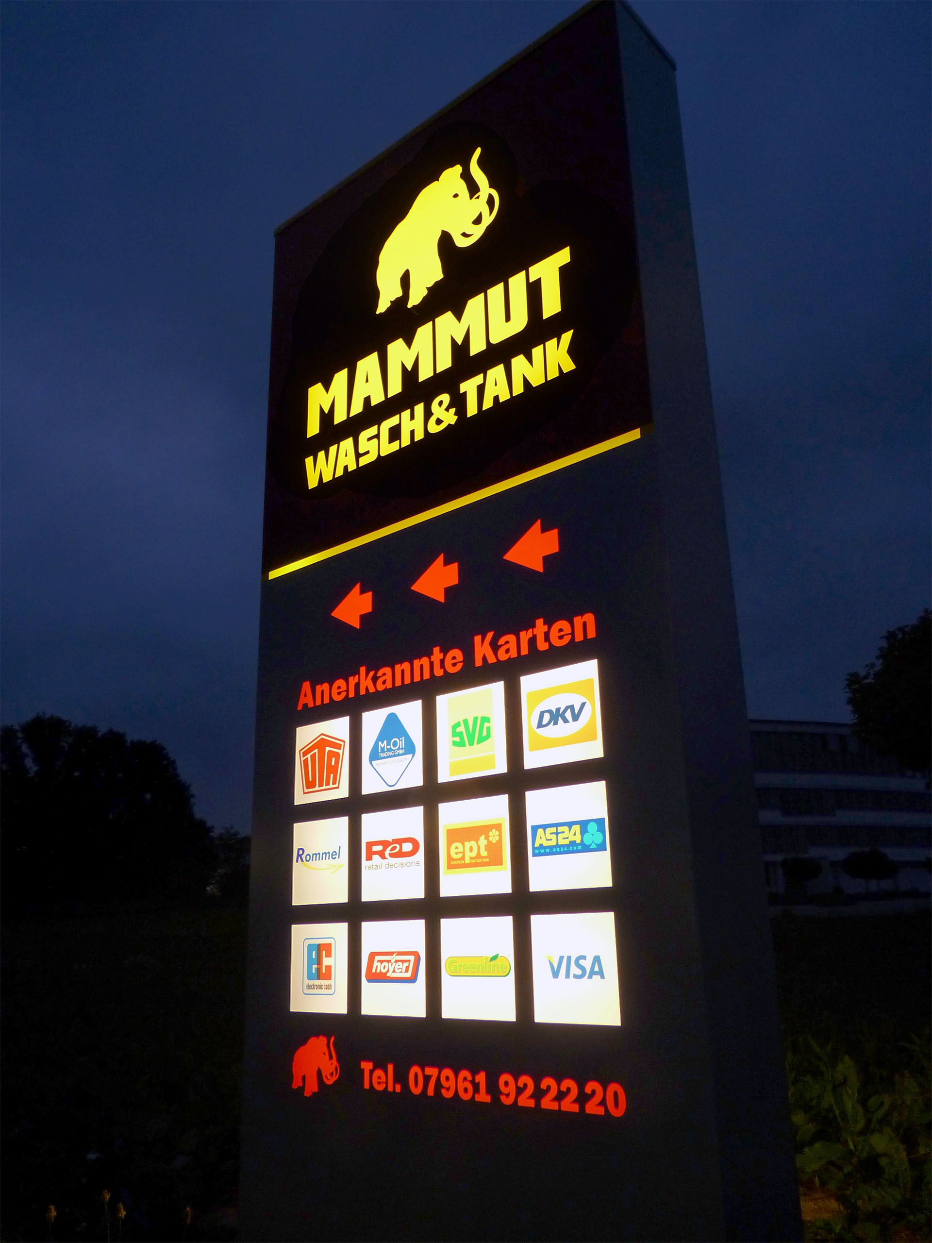 1 Pylon + 1 Leuchttransparente + 3 Fahnen
